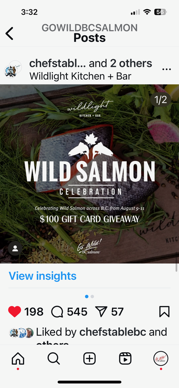 The Wild Salmon Celebration was a 3-day campaign held across 9 restaurants, coordinated with the Chef’s Table Society to showcase wild BC salmon. We worked with a diverse range of establishments, including casual and fine dining, to reach new demographics and promote local, sustainable seafood. Promoted extensively on social media, the event highlighted participating restaurants and dishes, amplifying its reach and engagement. By featuring wild BC salmon on menus, the initiative aligned with the BuyBC movement, increased consumer awareness, and strengthened demand for wild BC salmon.